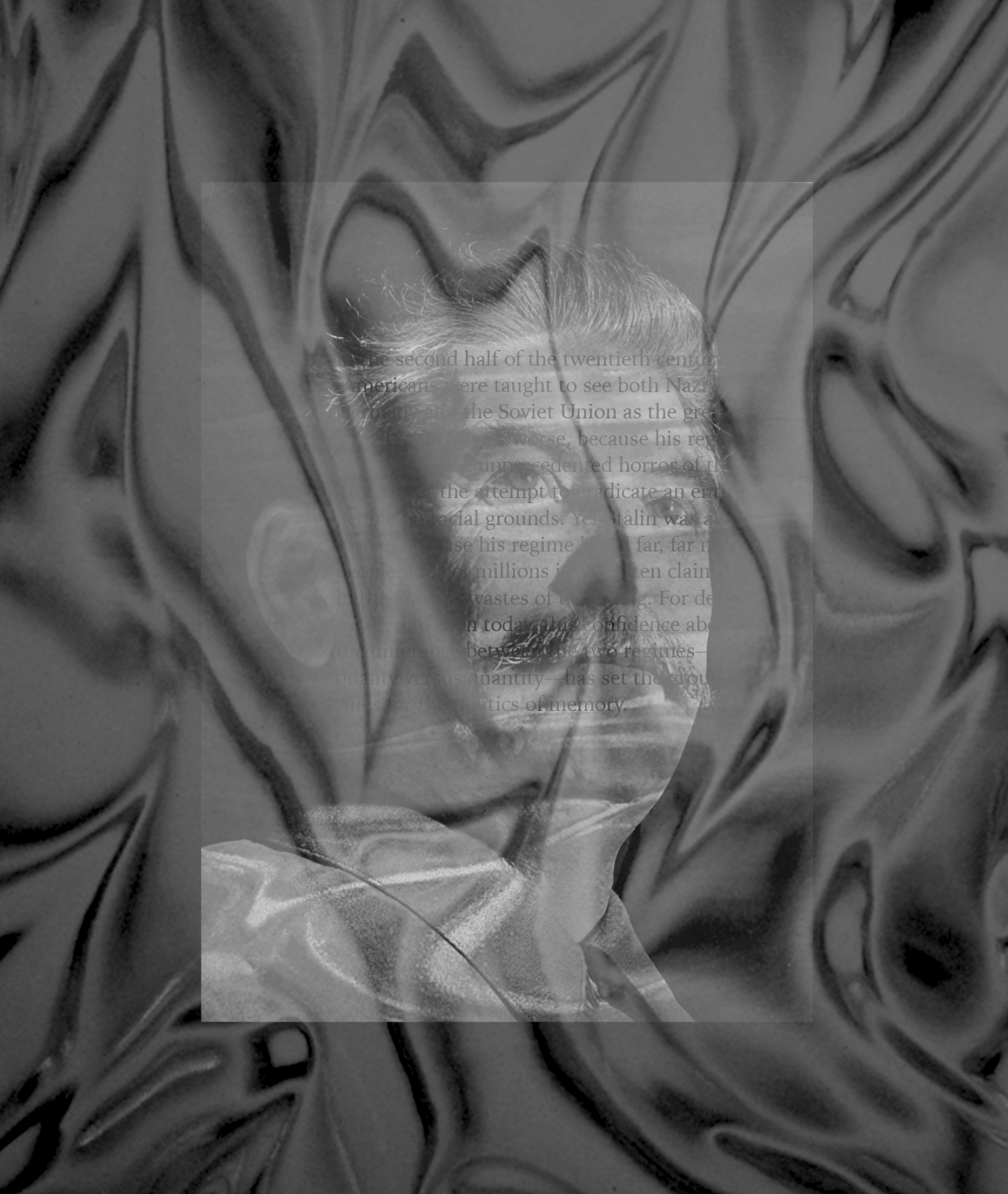 History fascinates for its fluidity; its narratives continually reshaped by shifts in perspective, where fact and interpretation collapse into one another. In this work, plastic functions as both material and metaphor: a translucent skin over the past that preserves, distorts, and suspends what lies beneath. Like memory, it protects even as it obscures, creating a surface where what is visible remains just out of reach.
